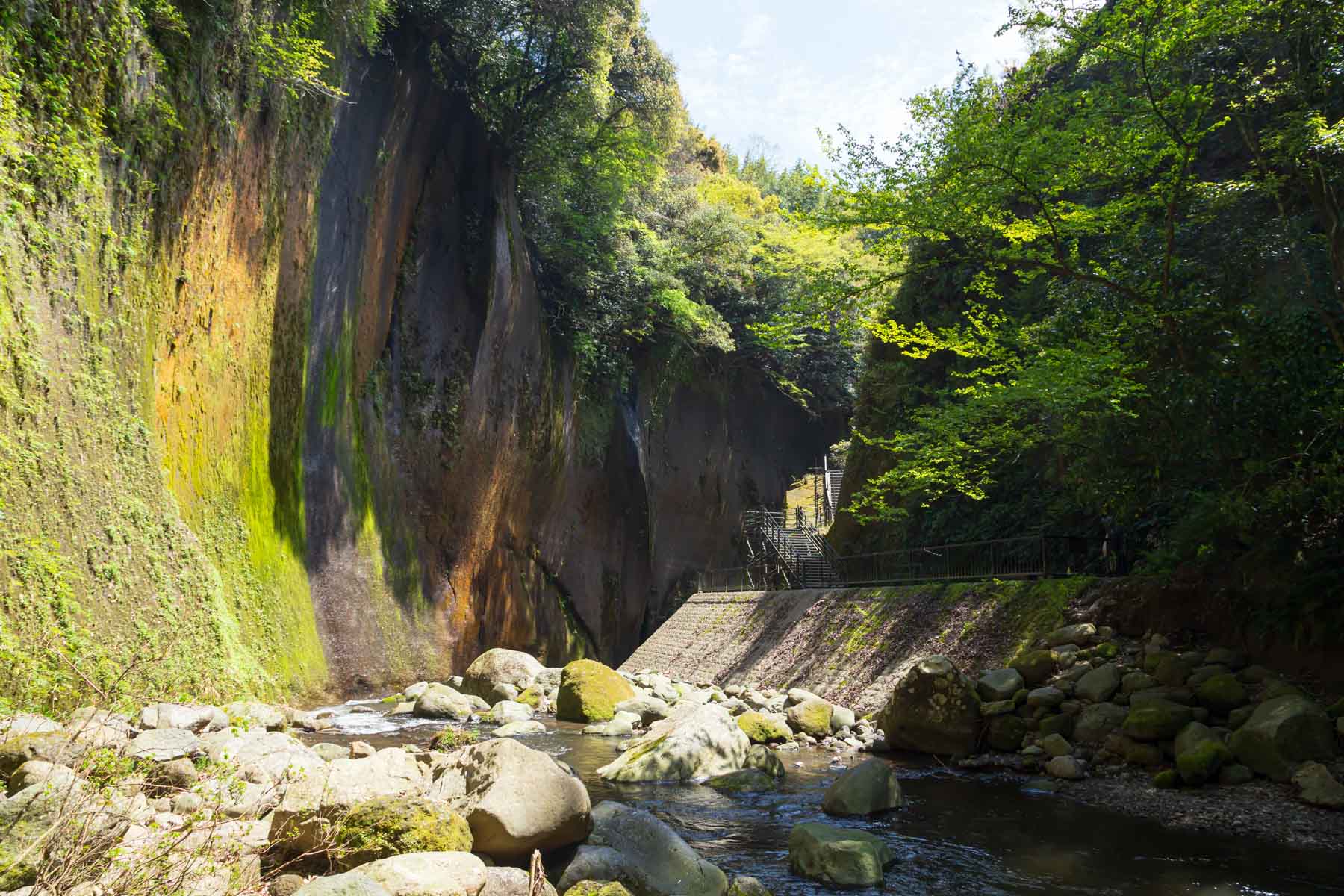 由布川峡谷は、その切り立った岩肌が特徴で、風景が非常に美しいですが、峡谷内の一部では携帯電話の電波が繋がらないなど、外部から遮断された立地でもあります。